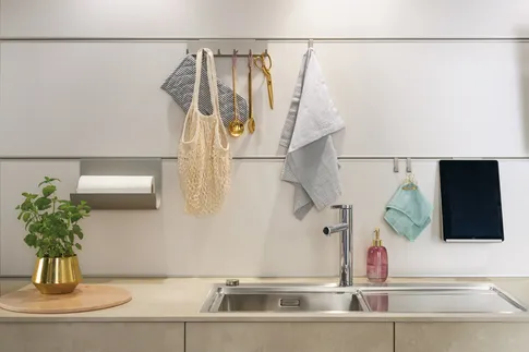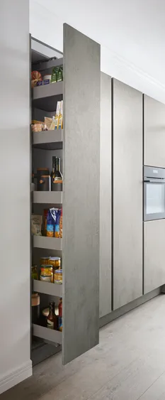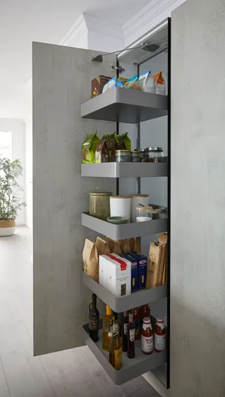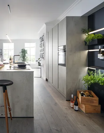 Die Weinbar in der Küche, die Kochinsel für genussreiches Zubereiten: Was will man mehr! Da wäre noch die perfekte Innenschubeinteilung der Auszüge oder ein praktischer Apothekerschrank für alles, was man schnell im Zugriff haben möchte. Apropos Griffe – da hat sich PAUL LEVÍN etwas ganz Feines ausgedacht: horizontale und vertikale Griffleisten in Onyxschwarz, die optimal den Look der Küche unterstützen.