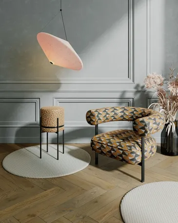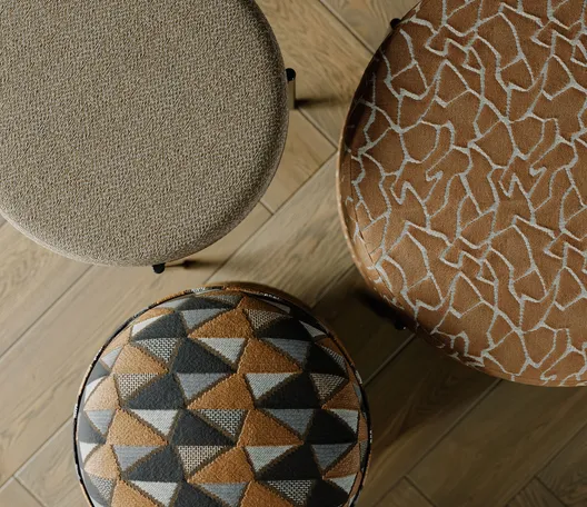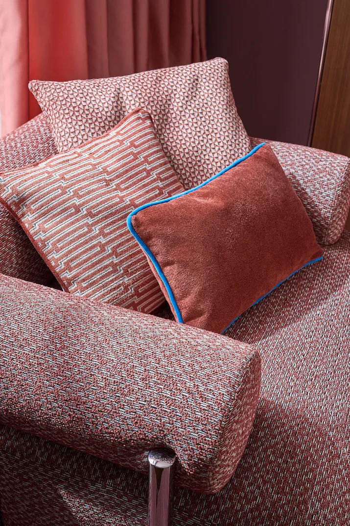 Durch die Verschmelzung von Kunst und Handwerk, getrieben vom Anspruch, Alltägliches durch Schönheit und Funktionalität zu erweitern, ist es uns gelungen, zeitlose Formensprache neu zu definieren. Ein Streben nach ganzheitlicher Gestaltung und die Überzeugung, dass Innovation nicht nur technisch, sondern auch ästhetisch und kunstvoll sein muss, findet in diesen Veloursstoffen in Hoch- und Tief-Webtechnik einen beeindruckenden Widerhall.