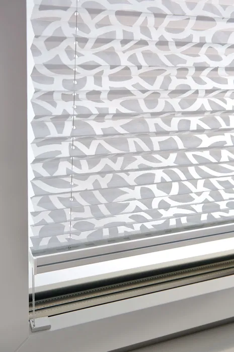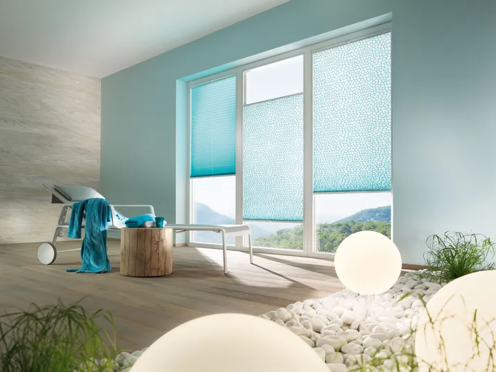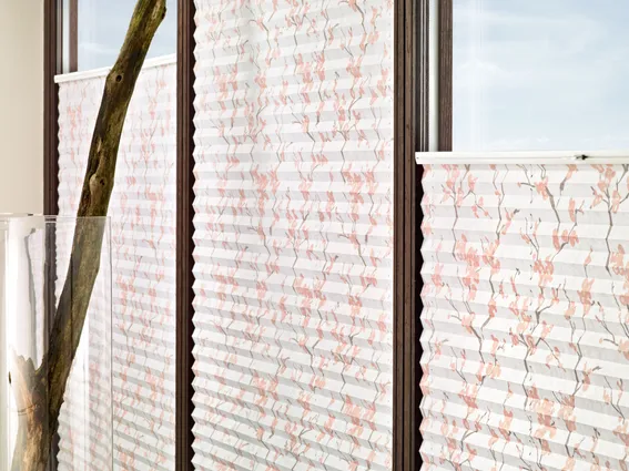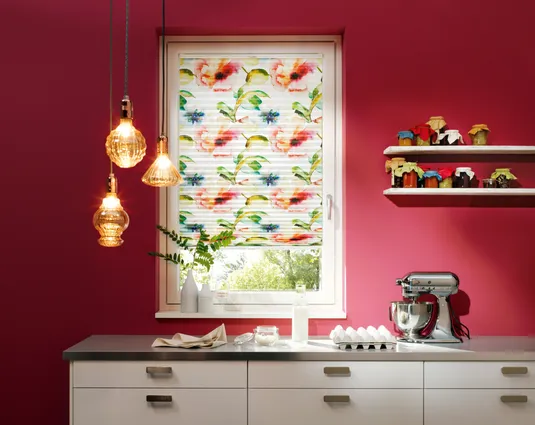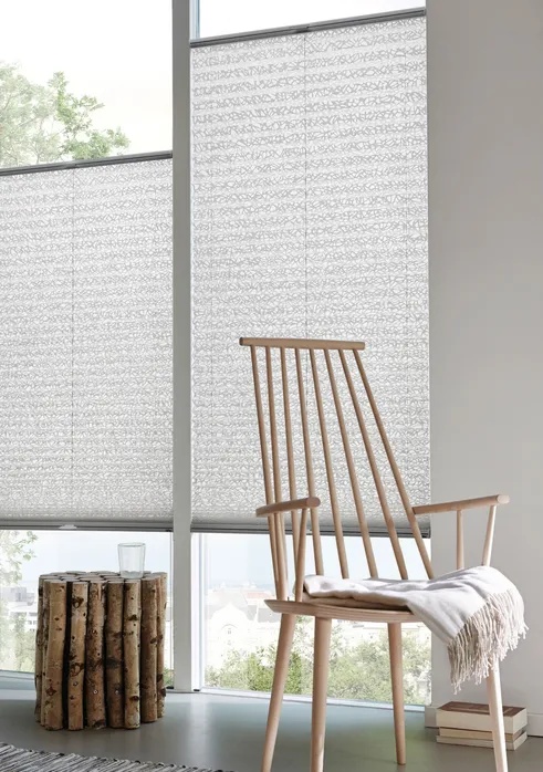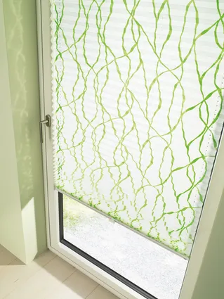 Diese textile Innenbeschattung ist in dauerhafte Falten gelegt und verleiht als praktischer Faltstore jedem Fenster das gewisse Etwas.