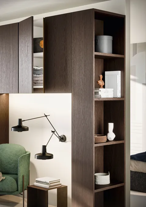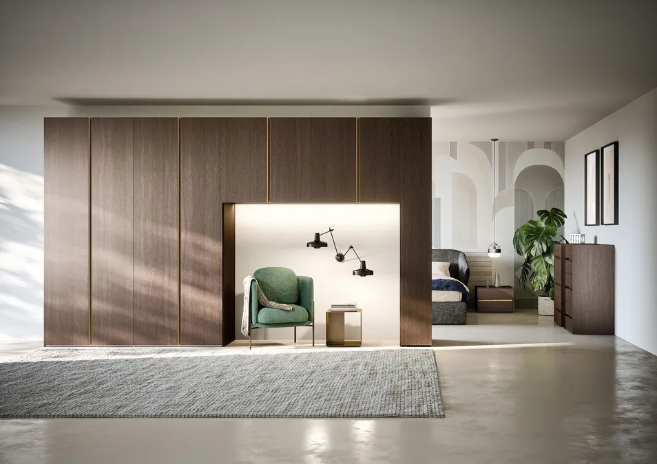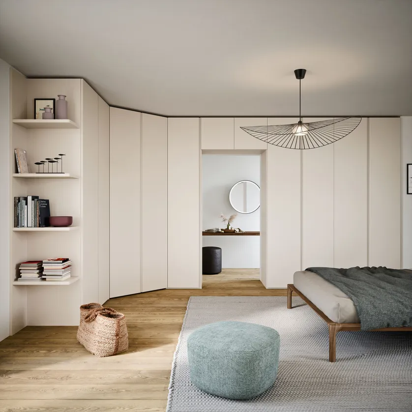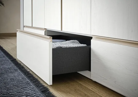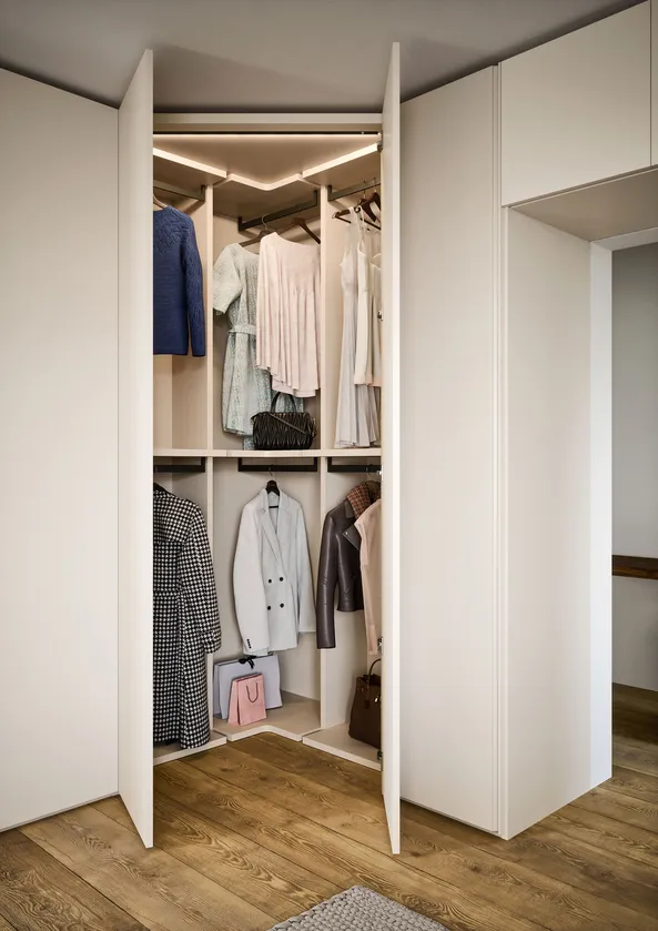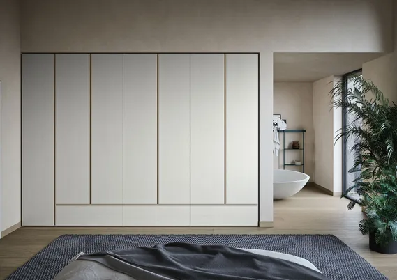 Minimal und perfekt für alle Räumlichkeiten geeignet. Der Schrank mit Schiebetüren GOLA weist ein Griffprofil über seine gesamte Höhe auf. Der Schrank GOLA kann als Einbauschrank sowie als Wand- oder Ecklösung geplant werden.