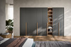 Der Flügeltürenschrank THICK zeichnet sich neben seinem modernen, geradlinigen Design besonders durch seine massiven, 3 cm starken Türen aus. Diese können zusätzlich mit einer großen Auswahl an Griffen individuell gestaltet werden. Er ist in matten und oxidierten Lackausführungen erhältlich. Der Schrank THICK kann als Einbau- oder Wandschrank oder auch als Ecklösung geplant werden. Wie alle Flügeltürenschränke kann auch er mit einer Glasseitenwand abschließen und im Innenraum mit einer Trennwand mit Metallrahmen sowie mit einer LED-Beleuchtung ausgestattet werden.