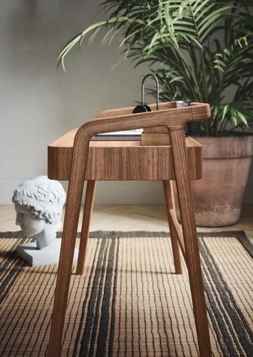 Der Schreibtisch KNOT ist ideal zum Arbeiten, zum Lernen oder einfach, um der Umgebung einen Hauch von Eleganz zu verleihen. Inspirationsquelle für diesen geschmackvollen Schreibtisch ist die Leichtigkeit und Zweckmäßigkeit des nordischen Designs.