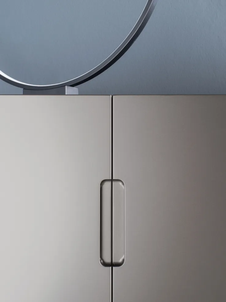 Das Sideboard FLOAT spielt geschickt mit den Konzepten Zusammenführen und gegenläufiger Bewegung. Der kompakte geometrische Körper des Stauelements ruht auf den schlanken Beinen eines Metallgestells – eine Kombination, die dem Gesamtbild Leichtigkeit verleiht. Klare, minimalistische Linien betonen das außergewöhnlich moderne und elegante Design. FLOAT ist in sieben Varianten erhältlich, mit zwei, drei oder vier Türen und in allen matten und oxidierten Lackfarben.