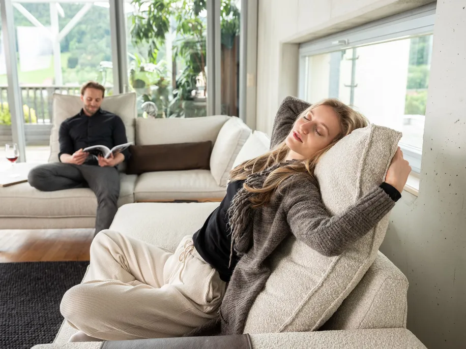 Es ist ein Sofa, das tagsüber alles kann: NOVARA bietet formschönes Design, viel Platz für die freien Stunden des Tages und mit dem integrierten Schreibtisch und den flexiblen Funktionskissen richtigen Halt, wenn du zu Hause arbeiten möchtest – smarte Funktionen inklusive!