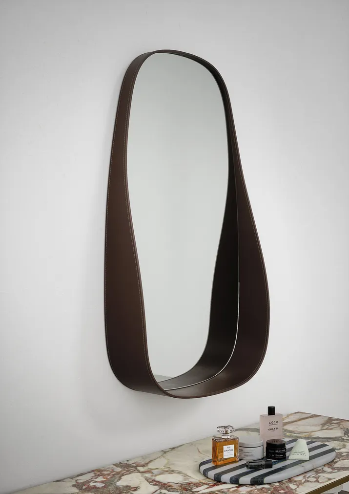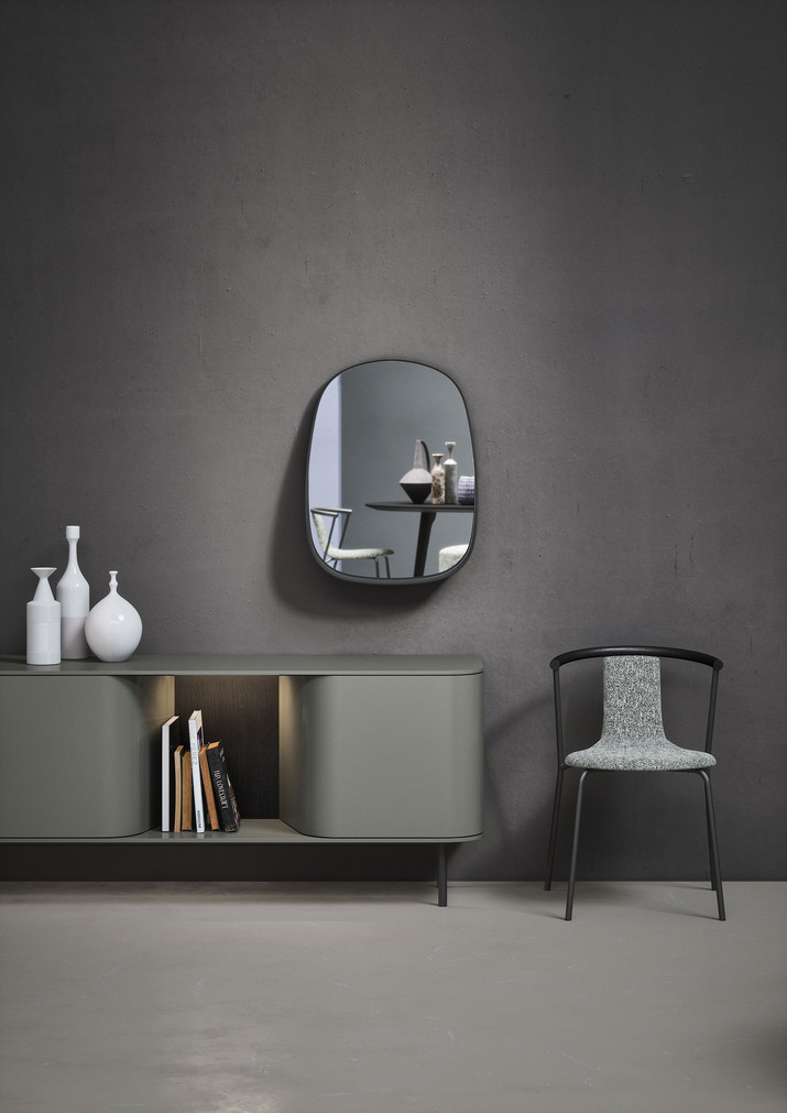 Der Spiegel FLOW zeichnet sich durch einen überstehenden Rahmen aus, der sich im unteren Bereich verbreitert und so eine praktische Ablagefläche bildet. Ein auserlesenes Einrichtungselement mit einer ganz eigenen Charakteristik. FLOW ist in drei verschiedenen Formen und Größen erhältlich.