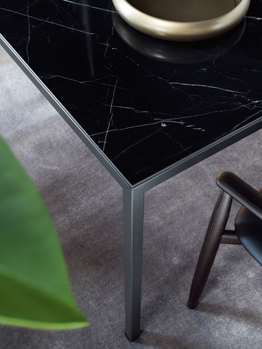 Essentiell und minimal. Der Tisch FILO wird quadratisch oder rechteckig angeboten sowie in allen matten, oxidierten und metal angegebenen Lackfarben.