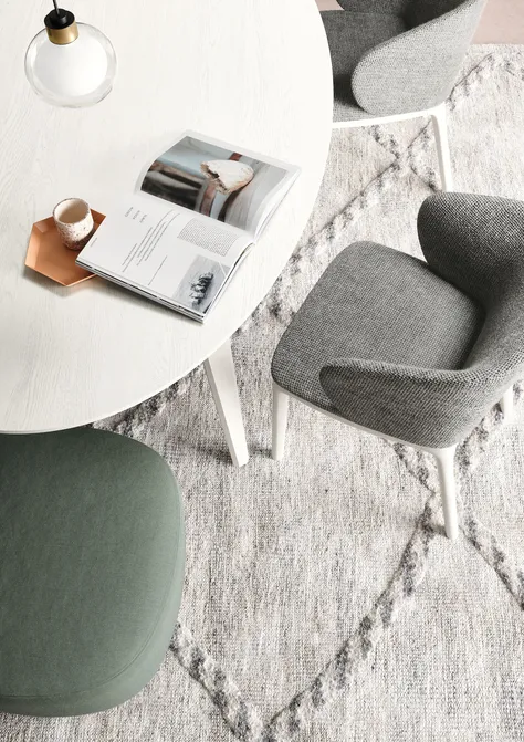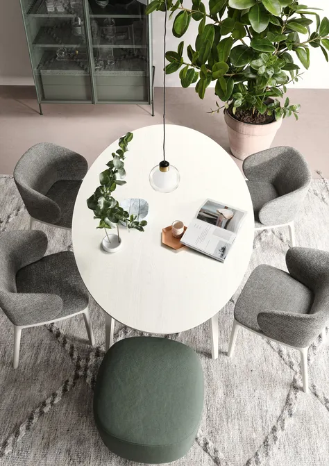 REA ist das perfekte Gleichgewicht zwischen modernem, funktionalem Design und einer vom Minimalismus inspirierten Formensprache. Die leicht schräg stehenden und sich nach unten verjüngenden Beine verleihen ihm Leichtigkeit und eine auf das Essentielle beschränkte Eleganz. Die Tischplatte kann für ein einheitliches Bild in der gleichen Ausführung wie die Tischbeine in Eiche, in der Ausführung Rovere, oder in der Nussbaumvariante Noce Canaletto gestaltet werden. Alternativ können mit matten oder oxidierten Lackausführungen sowie der Wahl von Lehm oder Light Stone als Ausführung interessante Kontraste erzeugt werden.