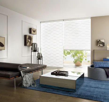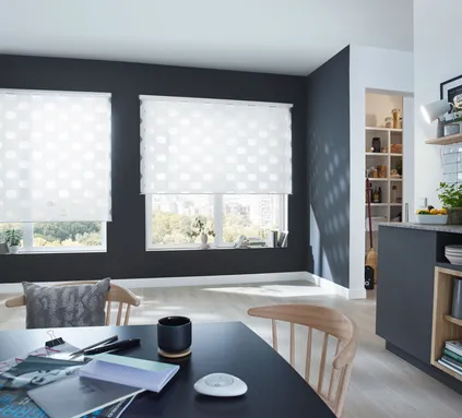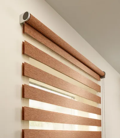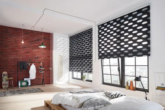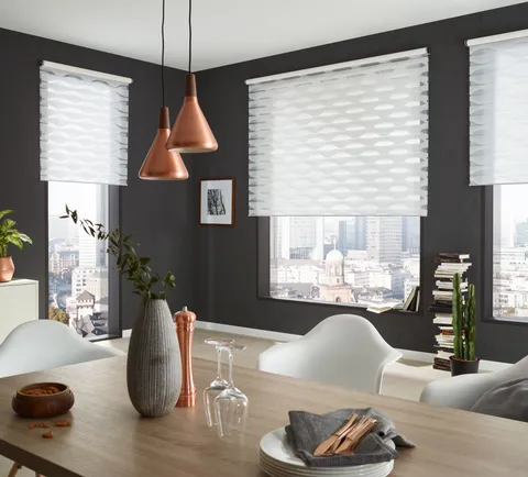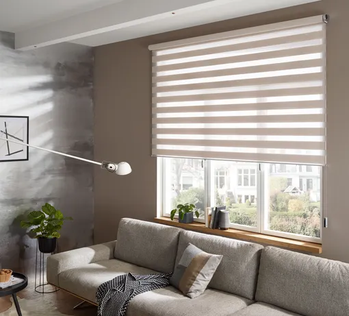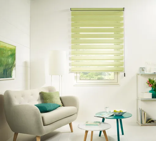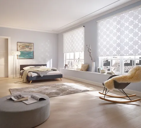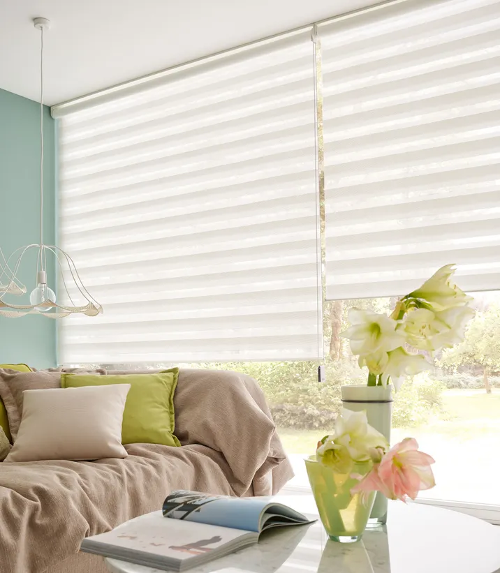 Unser Twinrollo hat viele Facetten: Es kombiniert die Vorzüge eines Rollos und die einer Jalousie. Abwechselnd blickdicht und transparent gewebte Stoffe ermöglichen eine stufenlose Lichtregulierung mit angenehm sanftem Raumlicht.