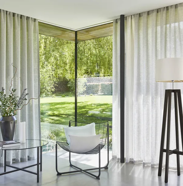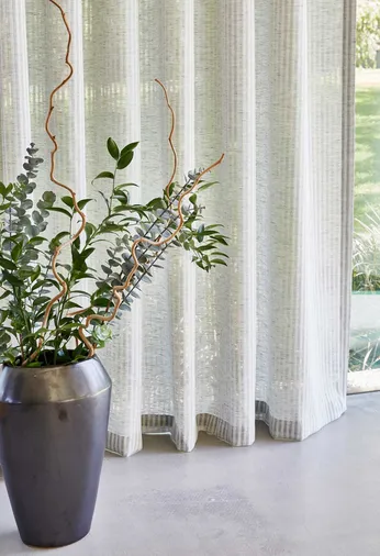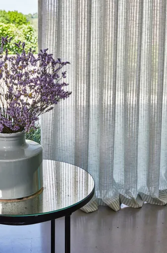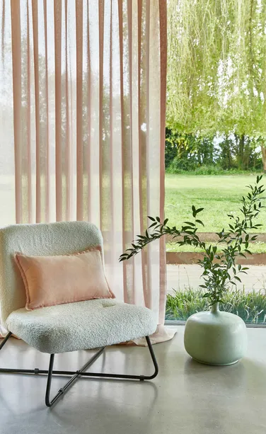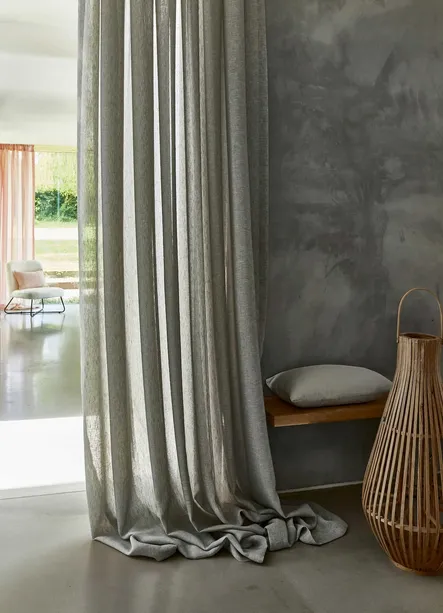 Sagen Sie hallo zu LANDHAUS 449. Ein Trio von raumhohen Transparentgardinen, die mit ihrem markant schlichten Design ein dezentes und interessantes Erscheinungsbild vermitteln und sich selbst in den größten Fensterflächen wunderbar drapieren lassen. Charakter wird durch aufwendige Fischgrat- und Kreuzschraffur-Dekore verliehen, die so konzipiert sind, dass sie zusammenhängend kombiniert werden können, um faszinierende mehrschichtige Fensterdekorationen zu schaffen. Eine Palette trendiger, warmer Naturfarben mit Stonewashed-Effekt sorgt für einen authentischen Wohncharakter. Farbige Akzente, die von Salbei- bis hin zu gedeckten Rosatönen reichen, verleihen dem Trend zu transparenten Stoffen einen ganz eigenen Charakter.