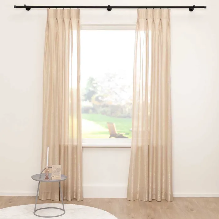 Wenn Sie auf der Suche nach einem Hingucker sind, wählen Sie dann den YOUNG&TREND 1295. Mit dieser silbernen, goldenen oder bronzenen Farboption machen Sie ein Statement. Dieser Transparentstoff ist auch wunderschön zu kombinieren: mit einem Unistoff für mehr Ruhe oder gerade mit einem glänzenden Stoff, um YOUNG&TREND 1295 Nachdruck zu verleihen. Der Stoff ist raumhoch und großenteils mit recycelten Garnen gemacht: 45 % recycelter Polyester und 45 % recycelte Baumwolle. Er ist GRS und Oeko-Tex zertifiziert.