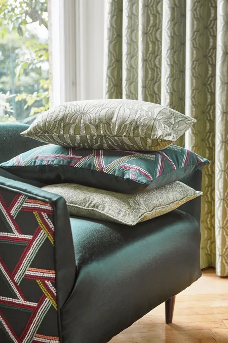 Inspiriert von der pulsierenden Kultur Marokkos präsentiert STIL&KLASSIK 386 eine faszinierende Vielfalt an Texturen, die von taktilen Stickereien und Jacquards bis hin zu luxuriösen Chenilles reichen. Die eleganten Designs der Kollektion mit ihren aufwendigen Korbgeweben und lebhaften geometrischen Mustern haben durchweg einen luxuriösen Glanz und eignen sich so für eine Vielzahl von Einrichtungsstilen. Eine üppige Palette kostbarer juwelenartiger Töne unterstreicht das marokkanische Thema, das von tiefen Rubintönen über goldenen Safran bis hin zu leuchtenden Türkistönen reicht.