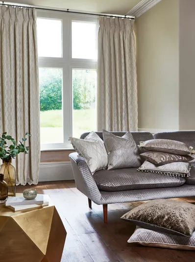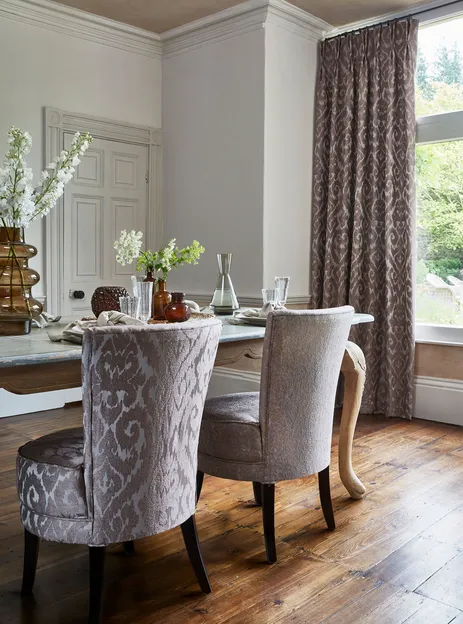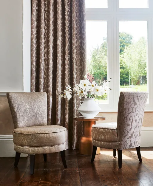 STIL&KLASSIK 387 & 388 ist eine sinnliche Mischung aus Jacquards und Samtstoffen, die von funkelnden Gewässern inspiriert sind. Sie umfasst Wellen, Metallic-Effekte und zart geprägte Samtstoffe in einer opulenten und dekadenten Farbpalette. Metallische Aufdrucke und reliefartige Designs wirken zusammen, um die reflektierende Oberfläche des Wassers nachzuahmen, wobei das geprägte Paisleymuster der Kollektion das opulente Thema unterstreicht. Mit einer Farbskala, die von neutralen Tönen bis hin zu pulsierenden Metallic-Farben reicht, fügen sich die luxuriösen und vielseitigen Designs in jedes Einrichtungskonzept ein.