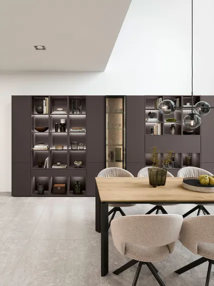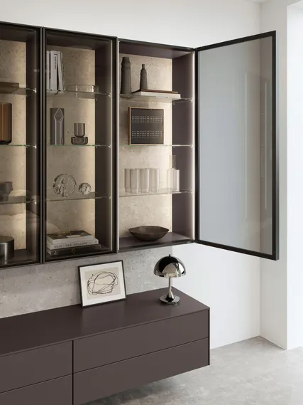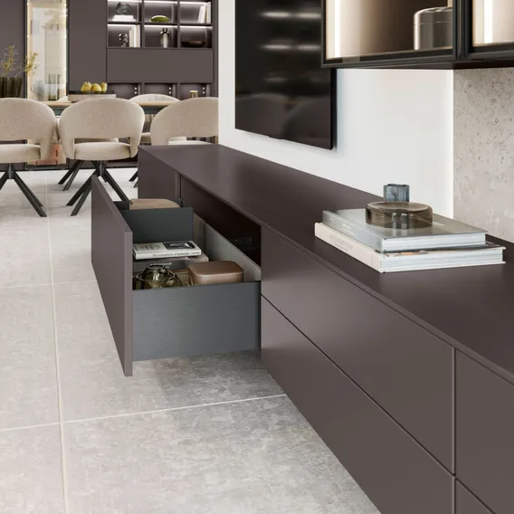 Raum für Stil: Diese Fronten entfalten ihre volle Wirkung durch ihre samtmatte Oberfläche und den eleganten Farbton Coffee, die dem Gesamtbild eine exklusive Note verleihen.
